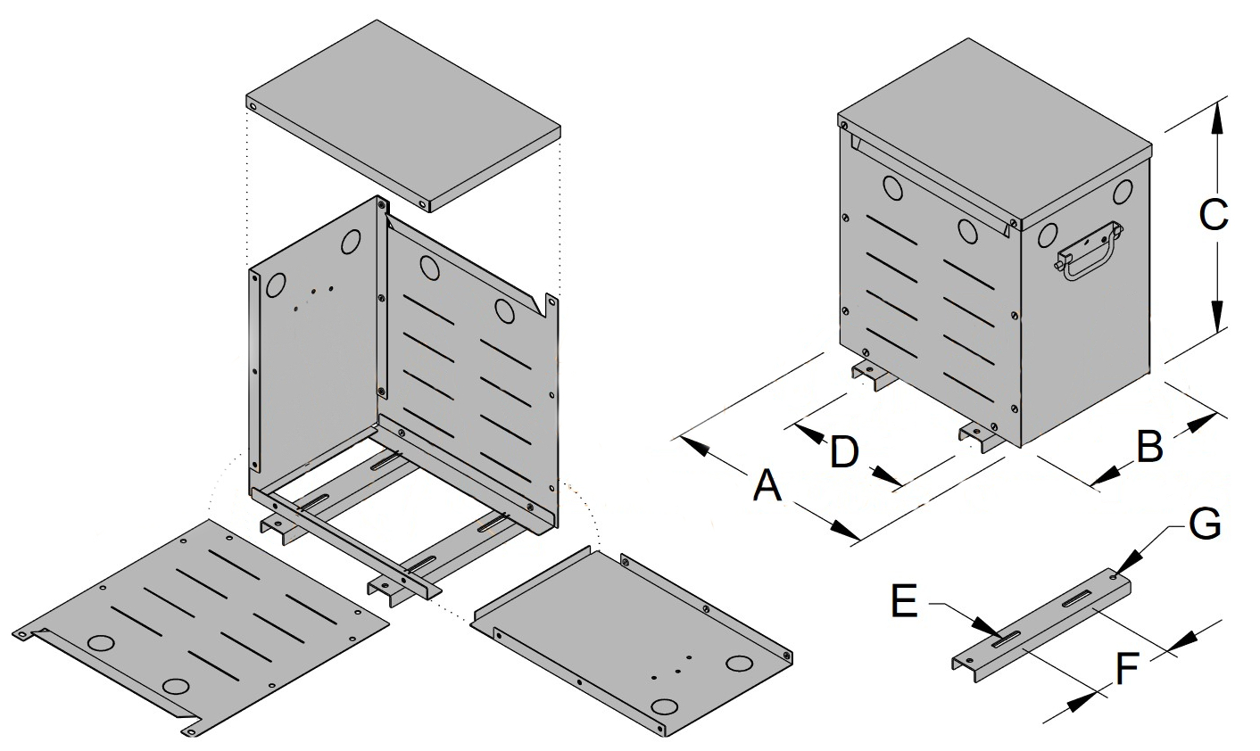 Ezeket a lemezház burkolatokat úgy tervezték, hogy biztosítsa a benne lévő transzformátor jó hűtését, ugyanakkor kellőképpen megvédje azt a káros hatásoktól. Szellőzőnyílásokkal vannak ellátva, amelyek biztosítják a megfelelő légáramlatot a burkolat belsejében.